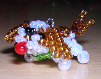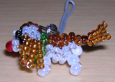 ビーズは針金で通してあるから、自分で尻尾を持ち上げて形を変えてしまいました。
