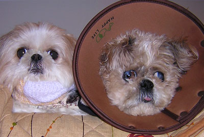 エリザベスカラー生活が板に付いたミルキーとムチウチ患者のようなルーシー。
