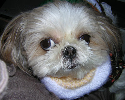 次の冬まで使う事が無いと思っていたネックウォーマーと腹巻を引っ張り出して、ルーシーにも装着!普段から洋服を着ているから体全体の毛が少なくて、フサフサWAN達よりは絶対的に寒いと思うのです。