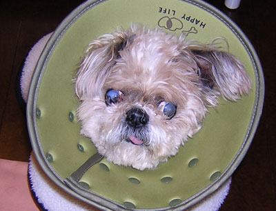 相変わらずのエリザベスカラー生活を強いられているミルキーです。