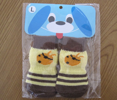 ミルキーが第○次足舐めブーム到来らしく、足の毛の色が変るほど舐めて困ってしまいます。それでソックスを再購入しました。4本セットで¥500-なんて安くなったものです♪