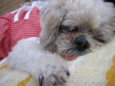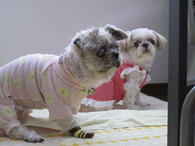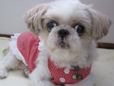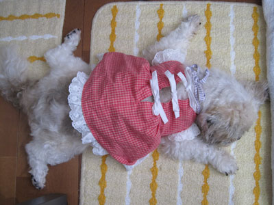 ミルキーの着てる「ツナギ」ですが、出来ることならこの暑い今も着せたい!抱っこした時とかミルキーの肌がムレて臭くならないし、汚れが直接毛に付かない(ウンチまみれにならない)優れものです♪