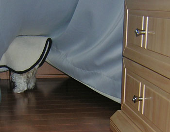 理由あって部屋のドアを閉めていたい時など、ミルキー達がトイレに行く度にドアを開けるのも面倒です。そんな場合に、出入り口がカーテンだと自分で捲って自由に行けるので楽です。怪我もしないしですしね。