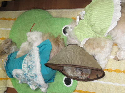 ご老犬sは、ご覧のように柔らかなマットの上で寝ています。やがて暑くなると、フローリングの上でベチャッと寝そべりクールダウンしているようです(笑)堅い床では関節が痛くなりそう・・・。