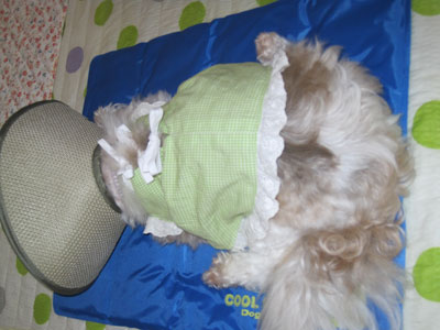 要領の良いルーシーは、ジェルマットの上でお昼寝しています。いつも寝ている場所へジェルマットを置いたら、一日中その上で寝ています。夜は、私のベッドの枕元にこのマットを敷いて就寝しますが、朝までマットの上から動かないですね。暑くてウロウロしていた以前と比べると、やはりこのマットは涼しいのでしょう!買って良かったですww