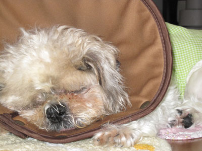 年を取って目が見えなくなってくると、薄暗い廊下の閉まったドアに気づかず顔面を打ってしまいます。シーズーは鼻ペチャ犬だから目を傷付けてしまわないか心配です。