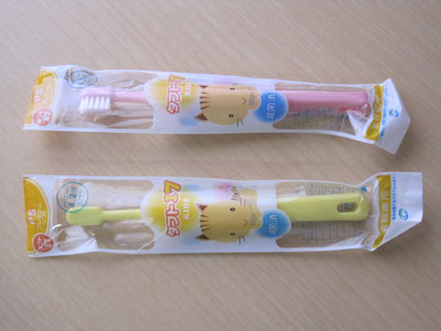 上が婦人用の歯ブラシ(S)下がミルキー達が使っている赤ちゃん用歯ブラシです。