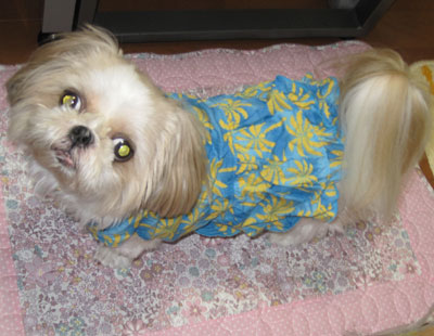 ルーシーもミルキーも南国ムードなワンピにお着替えいたしました♪これも頂き物(笑)