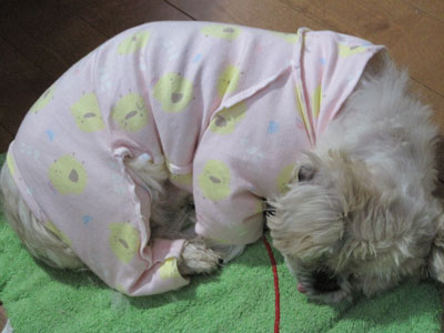 明日、ルーシーに着せる着物を作りますね。一日で出来ますので♪