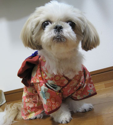 明日、ルーシーに着せる着物を作りますね。一日で出来ますので♪