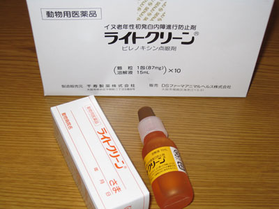 シーズーみたいに目の出てる子って眼病になり易いみたいです。ドライアイで目が充血したり、ばい菌が入って目やにが増えたり・・・。そんな時にこの「ティアローズ」を点します。ステロイドが入っていない目薬だから安心して使える常備薬です。シャンプー後に点すのにも丁度良いですね。これもネットで購入。
