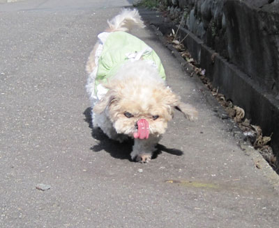 それで、折角のお天気!!ミルキーを外に連れ出して歩かせました。